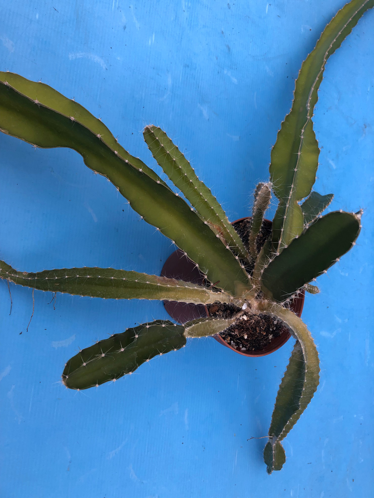 - Areole: Epifita, eretta all’inizio, poi pendente, fusto sottile, cilindrico