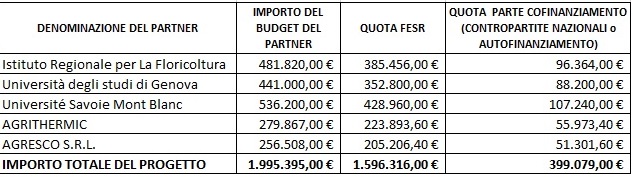 - Sostegno alla filiera florovivaistica della Regione Transalpina Alcotra
